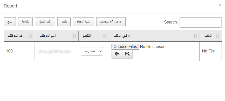 ويمكننا ارفاق اى ملفات لكل موظف لتدعم تقييم الموظف