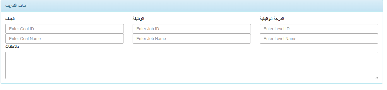 نقوم بكتابة وتحديد اهداف التدريب المنشود لكل وظيفة ويمكننا ايضا تحديد هدف تدريبي لكل مستوى وظيفى.