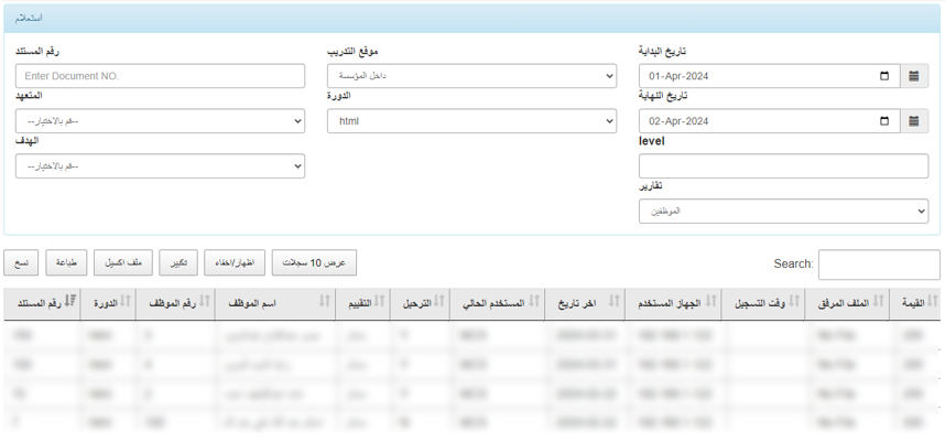 رقم المستند: هو الرقم المرجعى الذى يصدره النظام لكل دورة تدريب لاستخدامه فى الاستعلام والمراجعة.